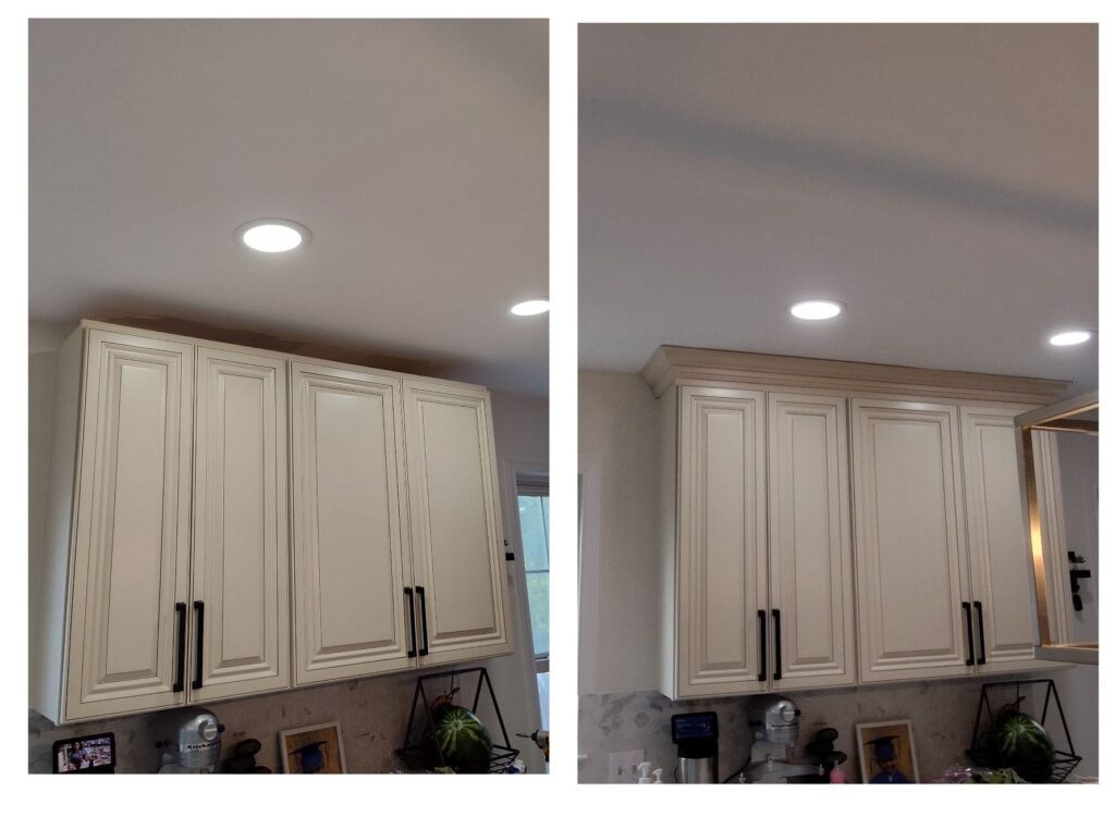 -CROWN MOLDING ON WALLS AND CABINETS.